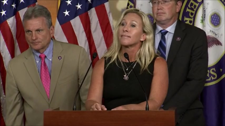 Rep. Marjorie Taylor Greene and other lawmakers hold a press conference to discuss removing Dr. Anthony Fauci as head of the NIAID.
