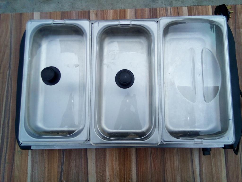 It has three 2.5L warming pans complete with clear lids, ideal for housing a variety of cuisines, and with a frame to hold them in place you'll keep the kitchen and table clean, as you wont need to worry about slips or spillages.