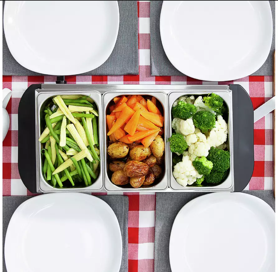 Ideal for parties and events the server features three high quality 1.5 litre non-stick trays with lids to keep your food warm over long periods. With a temperature range from 70 degrees to 120 degrees, you can choose the setting that is best for the food that you are serving. Cool touch handles mean that the trays are easy to manoeuvre while the removable washable trays take the hassle out of cleaning.